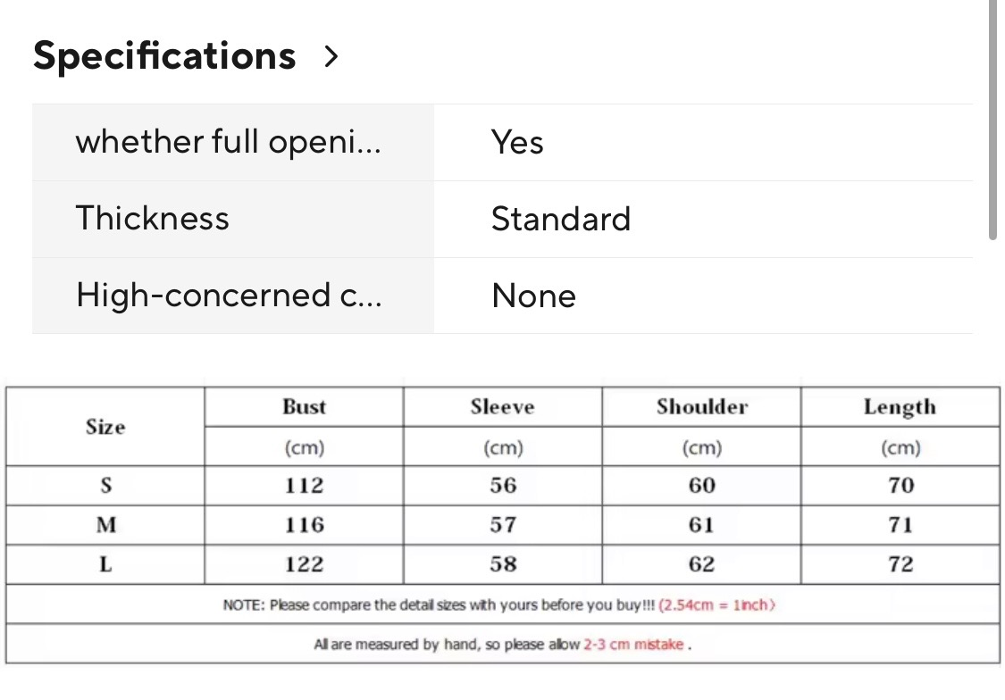 | Size | S, M, L |